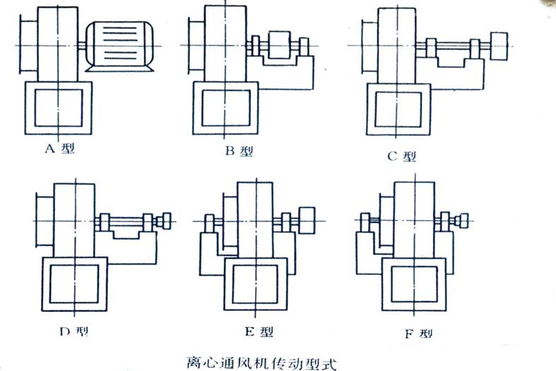 离心通风机传动型式代表符号与结构说明
